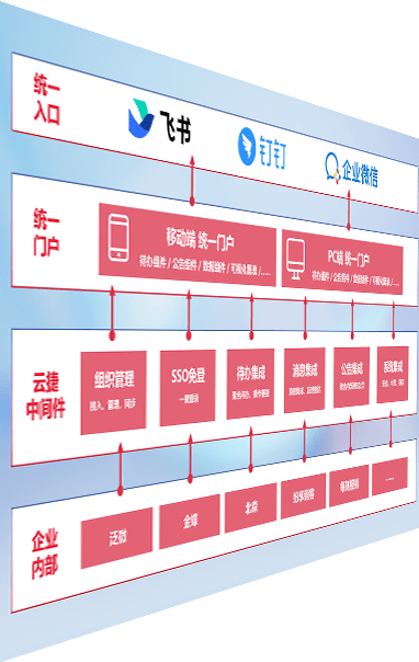 对协作平台提供支持服务,,支持企业应用与协作平台对接,,,,包含组织同步、、消息集成、、、待办集成等。。。支持目前主流的协作平台:钉钉、、、、企微和飞书。。
